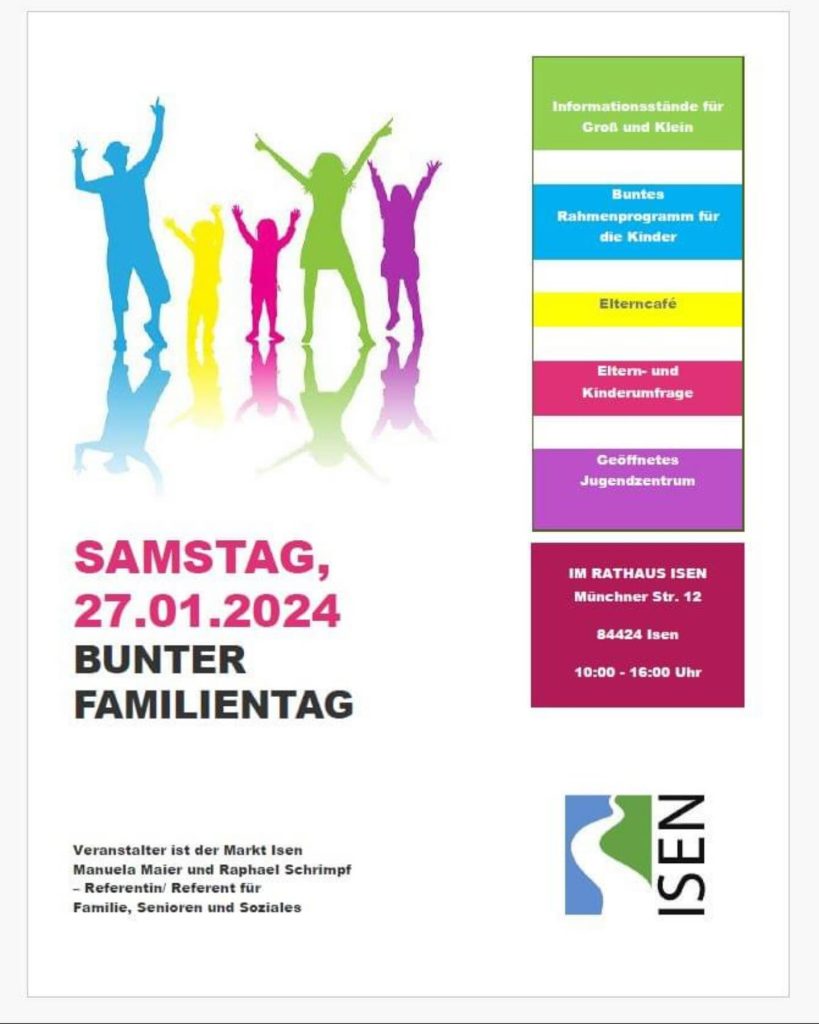 Am Samstag, 27. Januar 2024 findet im Rathaus zwischen 10 Uhr und 16 Uhr der erste „Bunte Familientag“ in Isen statt.